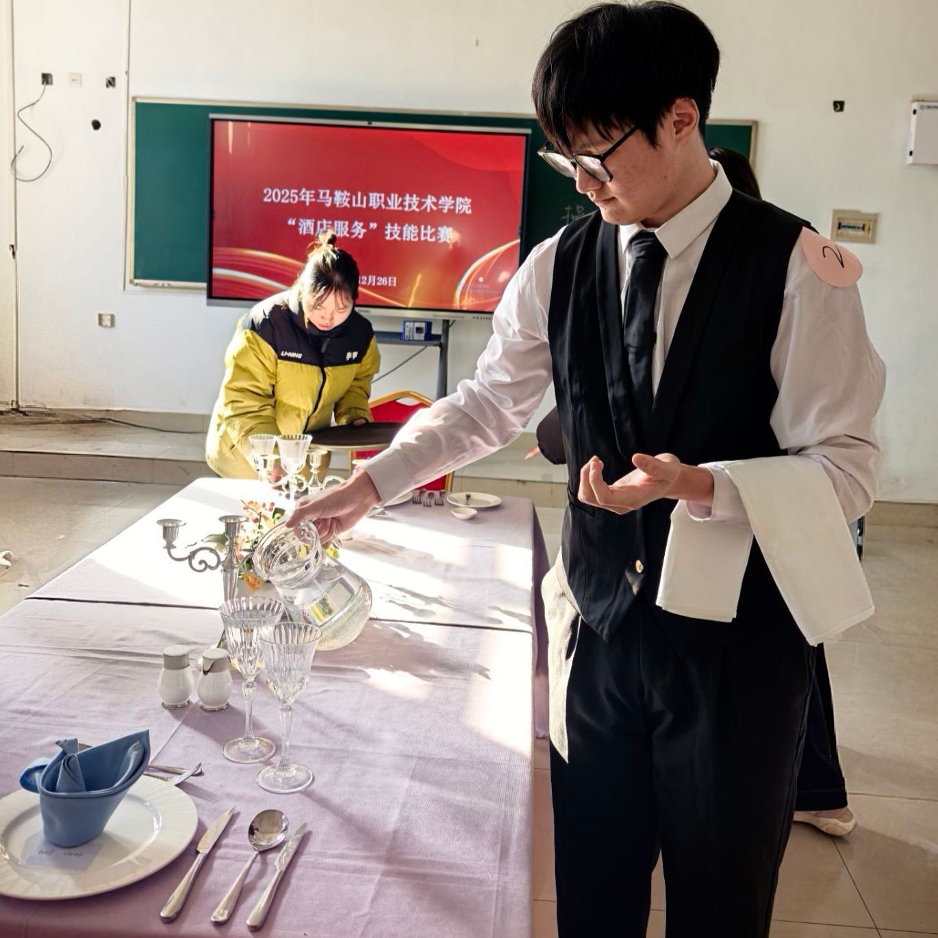 12月26日下午,应用外语系酒店服务技能趣味比赛在南区教学楼南40