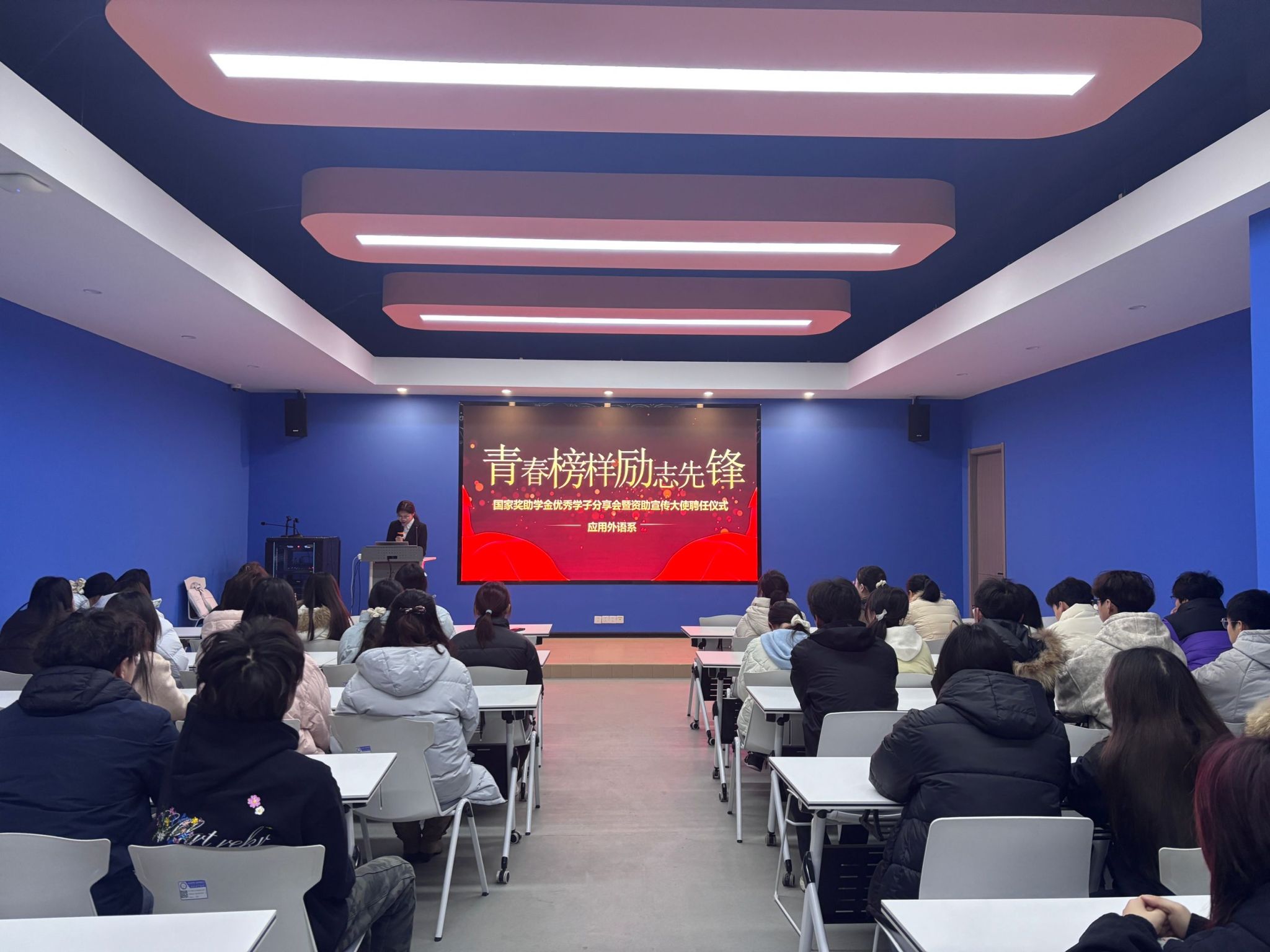 为深入落实立德树人根本任务,充分发挥优秀学子的榜样示范效应,凝聚学生奋进力量,12月24日,应用外语系在“一站式”学生社区成功举办“青春榜样,励志先锋”国家奖助学金优秀学子分享会暨资助宣传大使聘任仪式。系党总支副书记张丽、资助联络人唐慧、辅导员汤培培及60余名学生代表出席活动。